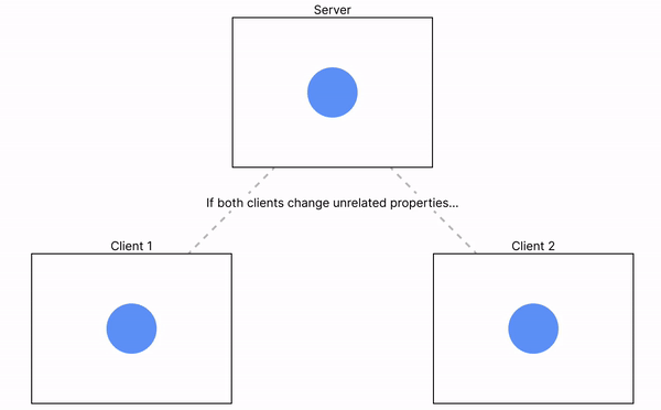 피그마의 멀티플레이어 서버는 클라이언트가 특정 객체의 특정 속성에 보낸 최신 값을 추적한다. 이는 서로 다른 두 클라이언트가 동일한 객체의 서로 다른 속성을 변경하면 충돌이 발생하지 않으며, 두 개의 클라이언트가 서로 다른 객체의 동일한 속성을 변경해도 충돌이 발생하지 않는다. 충돌이 발생할 때는 '서로 다른' 클라이언트가 '동일한 객체'의 '동일한 속성'을 변경할 때 발생하며, 이 경우 문서는 서버로 전송된 마지막 값을 가지게 된다. 이 접근 방식은 CRDT의 last-writer-wins register과 유사하지만 timestamp가 필요하지 않다. 서버는 이벤트 순서를 정의할 수 있기 때문!