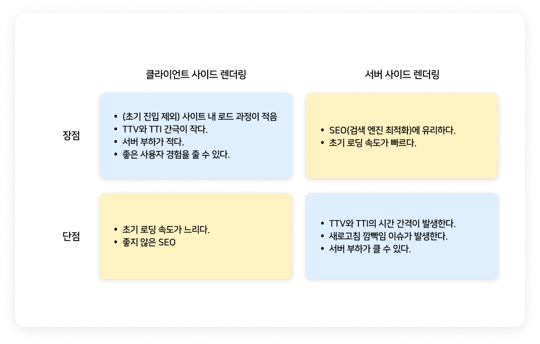 - 서비스와 콘텐츠, 프로젝트의 성격에 알맞는 렌더링 방식을 선택하자.