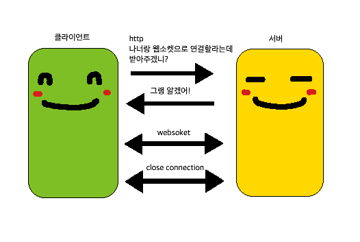 사실 클라이언트에서 polling을 통해 계속해서 서버에게 요청을 보내고 실시간(인 척하는) 정보를 받아올 수도 있겠으나, 서버에서 바뀐 정보가 없다면 불필요한 요청을 계속해서 보내게 되는 것이어서 HTTP 프로토콜이 아닌 웹소켓 프로토콜을 이용해 구현해보기로 결정, 관련 내용을 찾아보게 되었습니다.